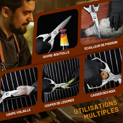 Bien plus que de simples ciseaux, ce véritable couteau suisse de la cuisine vous permet de :