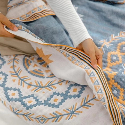 Ajoutez une touche d’âme et de douceur à votre intérieur avec la Couverture rustique mandala sereine.